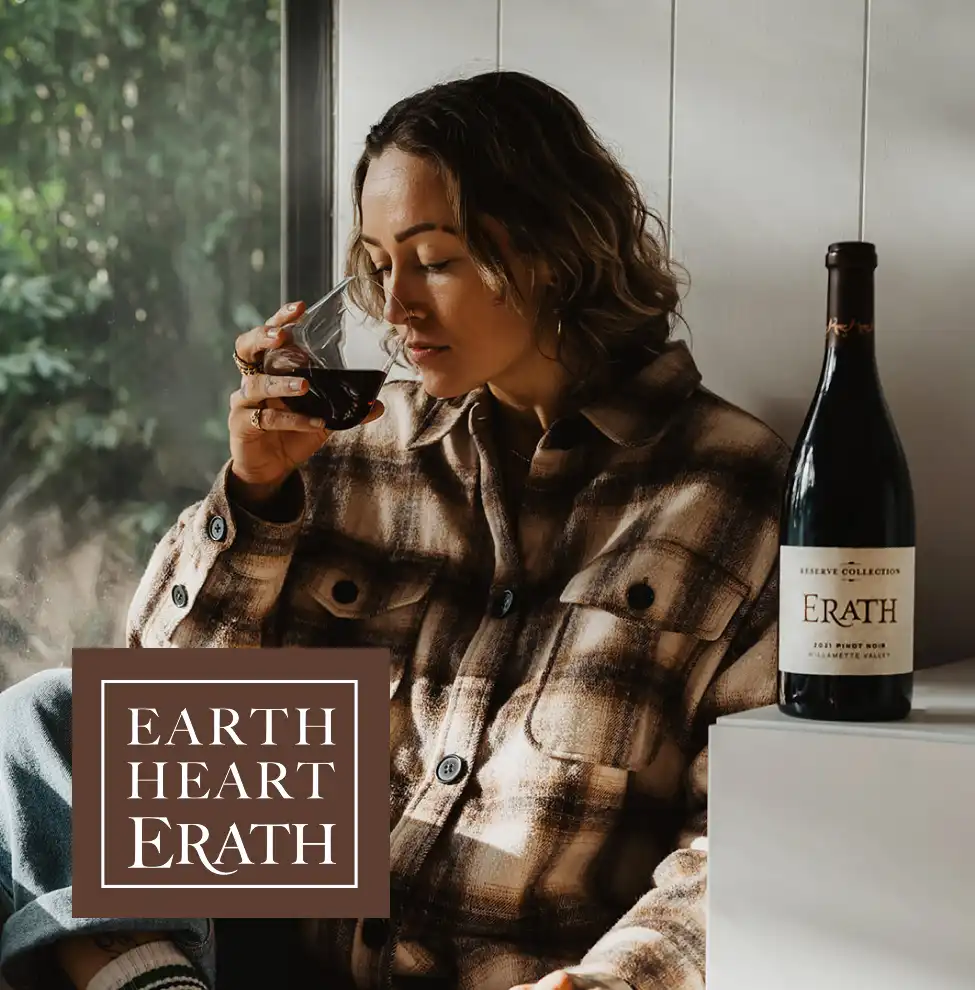 With notes of vibrant fruit and a smooth finish, Erath’s Pinot Noir invites wine lovers to share in the connection between land (EARTH), tradition (HEART), and craft (ERATH).